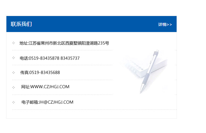 傳真:0519-83435688    郵編:213135    網址:WWW.czjhgj_com.dameihetao.com    電子郵箱:JH@czjhgj_com.dameihetao.com